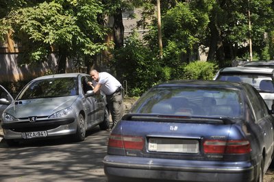 Rendőrök vizsgálják az egyik autóvadász által megtalált lopott autót a X. kerületi Pongrácz úton