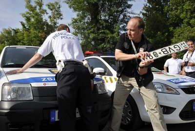 Vezda László, az autóvadászok egyik vezetője új tagot avat egy szolgálaton kívüli rendőr személyében