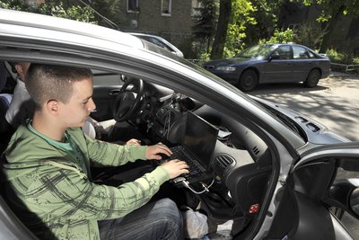 A megtalált, lopott Honda Accordnál várják az érkező rendőröket