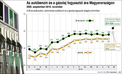 Az elmúlt 12 hónap átlagos üzemanyagárai