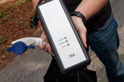 A töltőkábelen van egy tégla méretű doboz is, biztosítékkal, szabályzó elektronikával