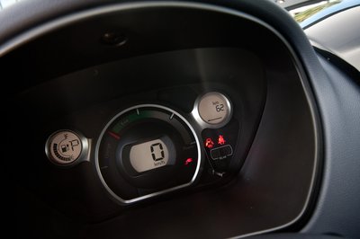 Fő helyen a "tank" töltöttségét jelző ábra. A konnektordugós piktogram jelzi, hogy épp töltődik a kocsi - ilyenkor nem tud elindulni