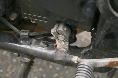 A hátsó tengely végén rozsdásodik az anya.
