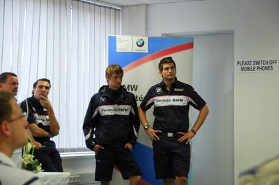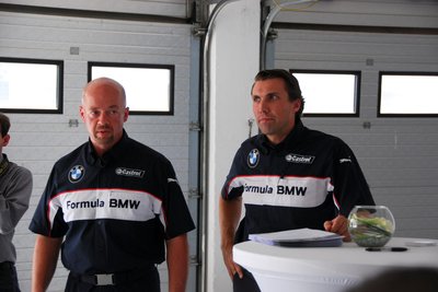 Norman Simon (bal) és a szervízcsapat két tagja. A társalgási nyelv angol, keveseknek akadt gondja vele