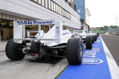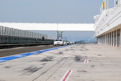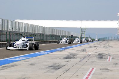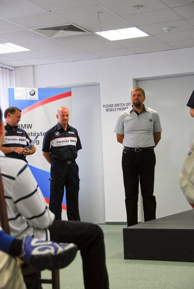 Ismerkedés a géppel, boxutca-célegyenes körbe-körbe, szerencsére a felvezetőautó kiállt