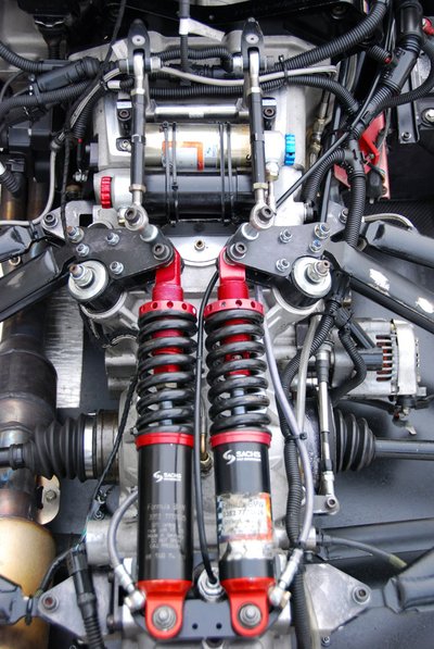 A nyomórudas felfüggesztésnek köszönhetően így pihentek egymás mellett a Sachs rugóstagok. Kell-e mondani, hogy beállítások tucatját tudják?