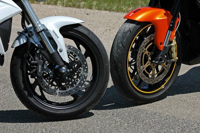 A Honda blokkolásgátlót kapott, az Aprilia meg simán csak csúcsminőséget. Tapasztalatlanoknak a CB1100R való