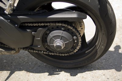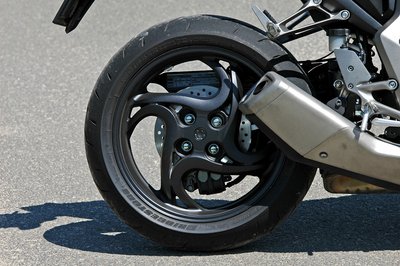 A hátsó kerék felfogatása egyoldalas, balra húzták a lengővillát