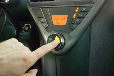 Nyomógombbal választjuk ki, mit akarunk a tekerővel: ventilátort erősíteni, fújási irányt kapcsolni, avagy hőmérsékletet változtatni