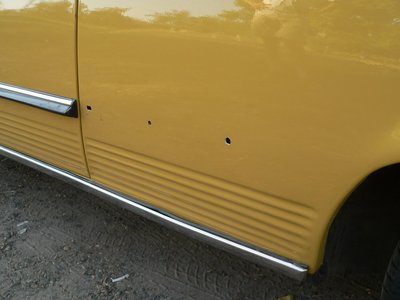Az első fotók Sárgáról, Csikós kolléga részére. Kicsit csálén áll a lökhárító