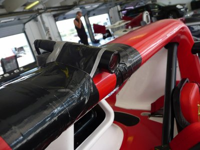 Vicces Caterham-festmény a turnébuszon