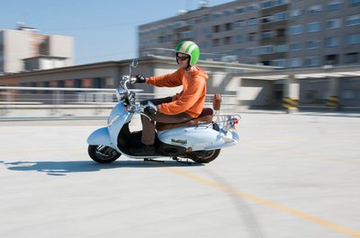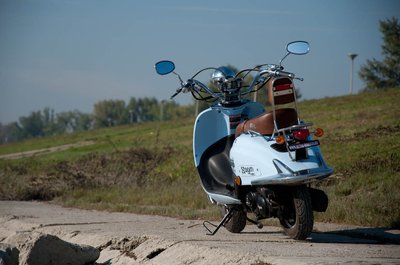 Vidám színek, lomha gurulás - nem a csúcsforgalomba való a négyütemű robogó