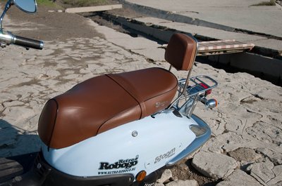 A háttámla a nagymotoron is puruttyán mutat, robogón sem kéne erőltetni