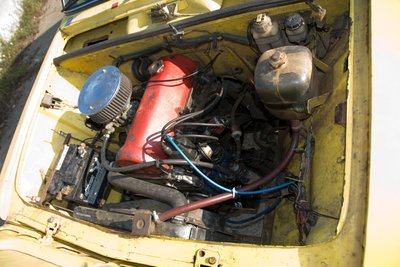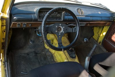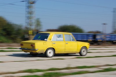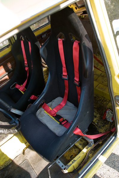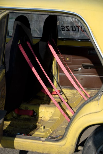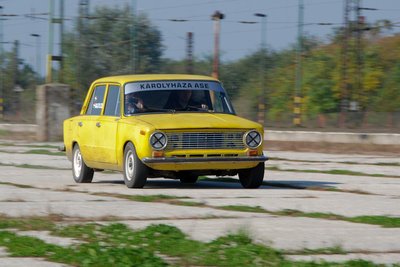 Az egyetlen lemezfelnis kocsi a társaságban a versenyautó