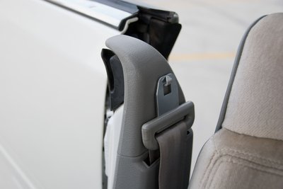 Az első biztonsági öv felső pontja felhajtva, hogy ne látsszon kívülről.