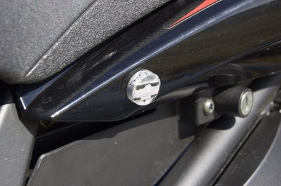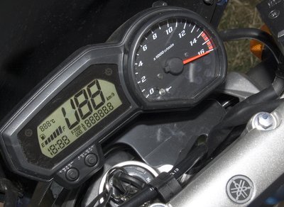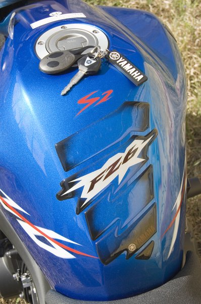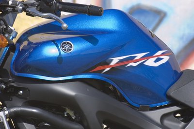 Új grafika a tankon: az FZ6 logo homályos, hogy érzékeltesse, milyen gyorsan megyünk