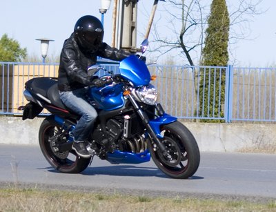 FZ6 teszt közben, a háttérben gondosan választott, színazonos kerítéssel