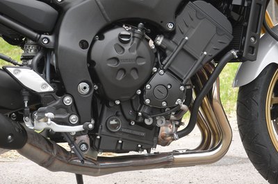 Az utcai Yamahák közül ezen van a leghosszabb leömlő, így tud elég nagy lenni a nyomaték, elég lent. Formatervezési fogásnak sem utolsó