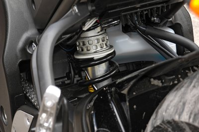 Egyszer 267 milliméter átmérő lassít hátul. A lengővilla egyszerű acél