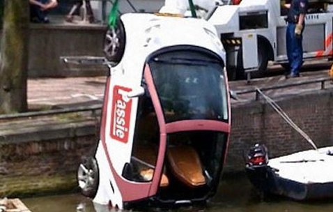 A holland fővárosban új módszerrel hergelik a lakókat a huligánok: autókat borítanak a várost átszövő csatornákba.