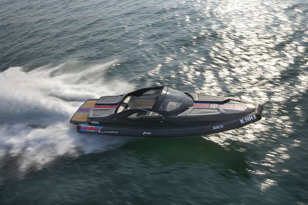 Ami viszont hiányzik, az a négy kerék: a Lancia versenyszíneit egy hatalmas tengeri motorcsónak viseli. A karcsú hajótörzs 13,1 méter hosszú, 3,83 méter széles, 11 személy is elfér az orrában kialakított kajütben, és két személy akár el is alhat benne. A mozgatását két 560 lóerős Fiat N67-560 jelzésű dízelmotor végzi vízsugár-hajtással, így a brutális csónak utazósebessége 30 és 85 km/h közé esik, a csúcssebessége pedig 100 km/h körül van. A nagy teljesítményű motorokhoz hatalmas, 1000 literes üzemanyagtartály jár, amely a készítők szerint elegendő szabadságot biztosít akár hosszabb tengeri utakhoz is.