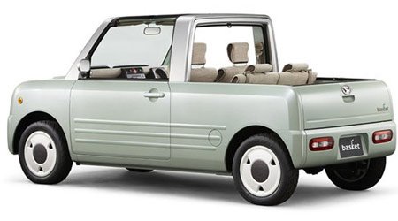 A Daihatsu exportmodelljei zömmel kevéssé izgalmas, viszont elég drága kisautók – nem is csoda, hogy a márka Magyarországon nincs is jelen – de otthon eleresztették magukat a formatervezők. Az idén többféle ötlettel is próbálkoztak, de a legmeglepőbbek a szögletes kreációik. A Basket, azaz kosár olyan, mintha egy alumínium táska és egy füles kosár bizarr keveréke lenne, apró kerekekre állítva. A csöpp kabrió szigorúan esztétikai szempontból egy rémálom, valahogy mégis jópofa, szerethető tárgy – alighanem komoly rajongótábort gyűjtene, ha gyártásba kerülne.