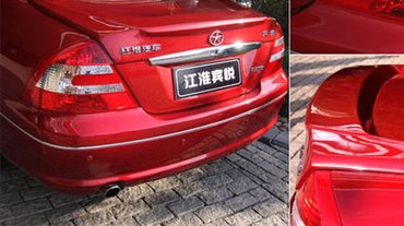 A fotókon a Jianghuai, ismertebb nevén a JAC Auto egy kevéssé ismert luxusmodellje látható, amelyet hátulnézetből inkább néznénk konfliktuskerülő formatervű japán nagykocsinak, netán a lámpák alapján eldeformált Mercedesnek. A Chrysler ötágú csillagára emlékeztető jelvény köré viszont olyan orrot találtak rajzolni, amilyet legfeljebb rémálmukban terveznének az ismertebb gyártók szakemberei. A hűtőrács mérete vetekszik egy Audiéval, mellette viszont a Nissan Micrát idéző békalámpák figyelnek. Az összhatást a fémkeretes ködlámpák, illetve a belőlük kiálló krómszínű valamik teszik még megdöbbentőbbé: így az autó egyszerre bugyuta, bandzsa és fenyegető.