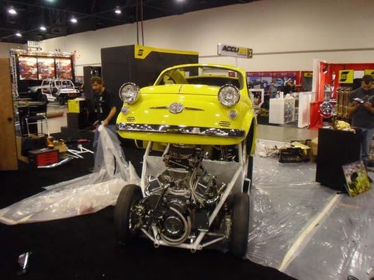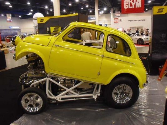 Ahogy a Fiat a Chrysler kapcsán előtérbe került Észak-Amerikában, rögtön akadt valaki, aki az olasz vállalat legismertebb típusából épített valami brutálisat. A Legacy Innovations egy 1959-es Fiat 500-as karosszériája alá épített egy mini-dragstert. Ha nem nézzük a nagy lyukat a motorháztetőn, a túlméretes fényszórókat és a gigantikus hátsó kerekeket, akár egy jó állapotú gyári gépnek is tűnhet, de itt a karosszéria csak egy könnyű műanyag héj, amely felfelé nyílik, így lényegében ajtóként is működik, alatta masszív csővázkerettel, és egy 427 köbhüvelykes – majdnem 7 literes – Chevrolet V8-assal, amely 725 lóerős.
