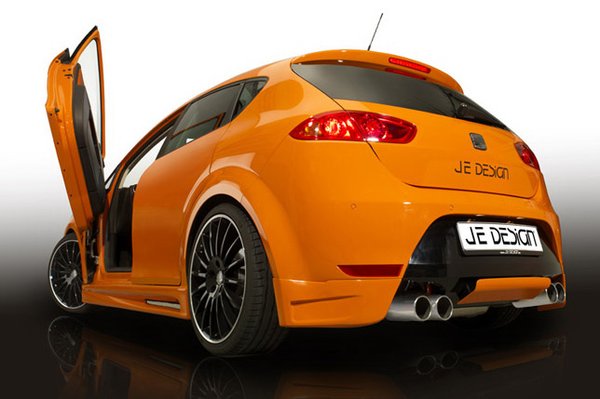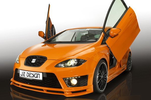 Világító narancssárga, a földön csúszik, és felfelé nyílnak az ajtói. Nem, ez nem a legújabb Lamborghini, csupán egy végletekig tupírozott Seat, amelyet a JE Design ütött össze a Leon FR alapján.