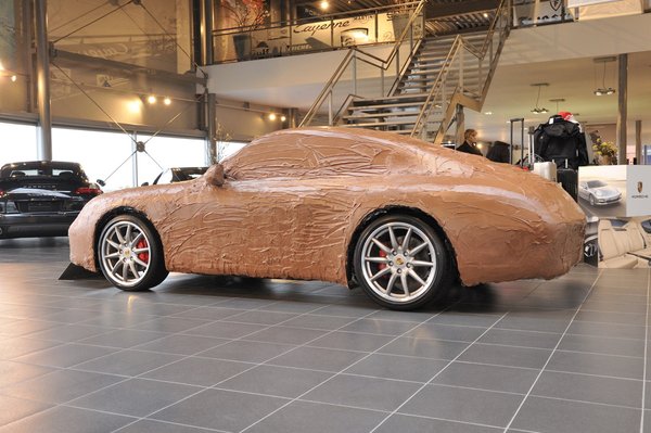 Az ötlet egy holland Porsche-kereskedésben öltött testet, ahol úgy vélték, jó reklám egy ízletesnek tűnő sportkocsi a szalon kellős közepén. Így alaposan lefóliáztak egy 911 Carrera S-t, és rádöntöttek 175 kilogrammnyi folyékony édességet. Hogy ne tűnjön amorf pacának, az első lámpákat és az indexeket rámintázták fehér csokiból. Nem tudni, hogy a reklámfogás meghozza-e a kívánt eredményt – azaz megszaporodnak-e a holland Porsche-vásárlók – de annyit elért a cég, hogy a csoki-Porsche fotói körbeszaladtak a világon.