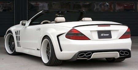 A fehér szörny, amelyet a FAB nevű német cég állított kerékre, az ami nagyobb, az biztosan jobb elvet követi. Ultraszéles sárvédők, hengerszerű könnyűfém kerekek jelképes gumifilmmel a felületükön, négy hatalmas kipufogóvég, és rettentő hűtőnyílások az első lökhárítóban. Egy első vonalbeli versenyautó sem nézhetne ki drámaibban, és ennek tetejébe a FAB SL-je brutálisan gyors is. V12-es biturbó motorja 750 lóerős és 1180 Nm-es csúcsnyomatékú, így a hordólábú, ólomfehér roadstert 4 másodperc alatt rántja 100 km/h-ra, és 310 km/h-s végsebességet biztosít a számára.