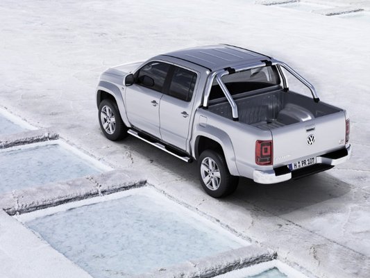 Külsőre nem nagy meglepetés a masszív platós, részint mert ugyanolyan sematikus, célszerű szerszám, mint a Toyota, a Nissan vagy a Mazda hasonló modelljei, részint mert azt a kevés jellegzetes részletet, ami mégis akad, már láthattuk a korábbi VW Pickup tanulmányon. A hűtőmaszkon és a szögletes sárvédőkön kívükl nem is akad más markáns ismertetőjegye a típusnak – de ez az a járműkategória, ahol a forma soha nem is számított igazán. Sokkal lényegesebb a használati érték, és ezen a téren az Amarok is hozza a kötelező szintet. Az autó 5,25 méter hosszú, a raktere 2,52 négyzetméteres, és 1150 kilogrammal terhelhető.