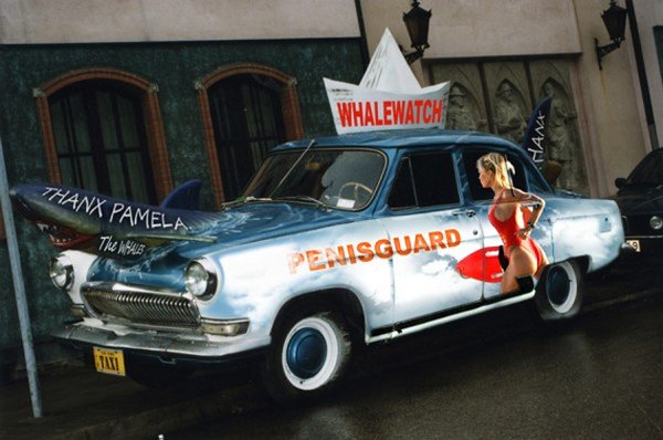 Egy Volga M21-est alakítottak át, egyedi festéssel és sajátos légterelő elemekkel. A kocsi orrából egy cápa ugrik ki – némi képzavarként, hiszen a cápa hal, nem emlős, és így nincs semmi köze a bálnákhoz – a hátán a köszönjük Pamela felirattal. A cápa elhelyezésében rejlő utalás azonban így is félreérthetetlen. Az autóra ezek kívül a whalewatch és a penisguard feliratokat festették fel egy Pamela Anderson egykori önmagára emlékeztető amerikai vizimentő csaj hátulnézetével együtt.
