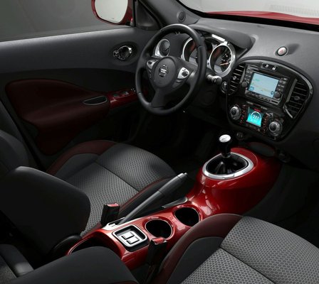 Ha a külsejétől eltekintünk, a Juke egy magasított Micra-szerűség. A hossza 4 méter, a szélessége 1,765 méter, a magassága 1,57 méter, a tengelytávja pedig 2,5 méter. Lényegében a Micra és a Qashqai közti űr kitöltésére szánják. Az ötajtós karosszéria elvben ötszemélyes, de inkább csak négy felnőtt számára tűnik kényelmesnek. A belső teret is igyekeztek érdekesen kialakítani: a váltót és a kéziféket magába foglaló elem a karosszéria színére fényezett műanyagból készül – a készítők szerint a motorkerékpárok tankja adta az inspirációt.