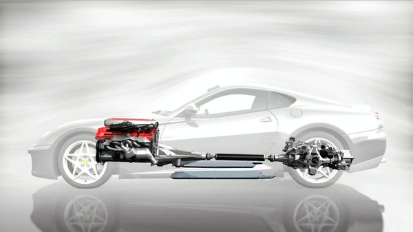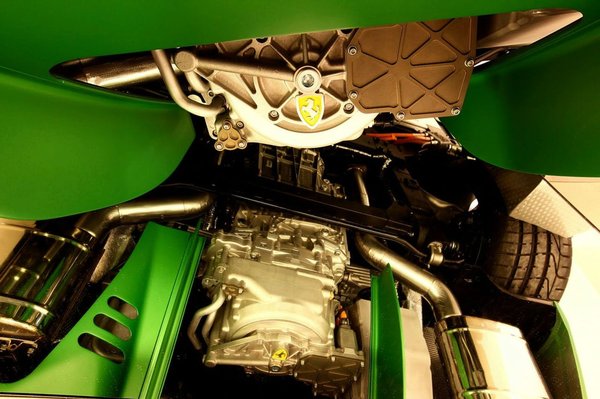 A hibrid minden megoldás közül az egyik legkevésbé rossz a Ferrari számára. Így érintetlenül hagyhatják a bevált benzinmotorokat, nem kell dízelek vagy turbós benzinmotorok szelídítésével foglalkozni, és a rendszer könnyen felhasználható bármely meglevő modellben. Az átalakított 599-esben látszik is, hogy ez mennyire így van: annyit tettek a tervezők, hogy a padlóba beépítettek egy sor akkumulátorcellát, a villanymotor pedig a hátsó differenciálművön keresztül csatlakozik a rendszerbe. Így a vasat alig kellett megváltoztatni – a legtöbb időt az vitte el, hogy összehangolják a rendszert.