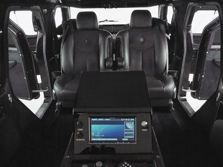 A biztonság mellett a kényelem állhatott második helyen a teherautó méretű terepjáró megalkotásánál: többek között minibár, szivartartó és folyadékkristályos képernyők gondoskodnak az utasok szórakoztatásáról.