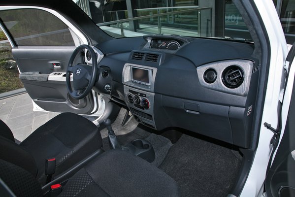 A belsőt sem hagyták érintetlenül a németek: karbon és Alcantara díszítésekkel találkozunk mindenfelé, ha körülnézünk a kis ötajtósban. Természetesen a navigációs rendszerrel felszerelt DVD-lejátszó sem hiányozhat egy ilyen ékszerdobozból - ezt a szimmetrikus műszerfal közepén helyezték el.