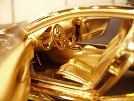 Egy Bugatti acélból, műanyagból és alumíniumból is megfizethetetlenül drága, hát még aranyból és gyémántból. Ez a példány 18-ad akkora, mint az eredeti, mégis két életnagyságú Veyront lehet megvenni az árából.