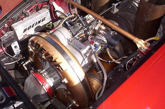 Az eladásra kínált 1982-es évjáratú Porschén leginkább a motorháztető két rövid, kerek kéménye a feltűnő, egyébként szokványos utcai autónak látszik. Pedig messze nem az, hiszen a vaskos, felfele néző kipufogók a géptető alatt egy Boeing T-50 jelzésű gázturbinában folytatódnak. A viszonylag kisméretű hajtóművet, amely különösebb gond nélkül befér a Porsche orrába, különféle helikopterekben és kisrepülőkben használták az 1960-as évekig, így manapság viszonylag olcsón beszerezhetők Észak-Amerikában, és a teljesítményük alapján egész jól mozgathatnak egy ilyen sportkupét – nem véletlen, hogy több ilyen átépítés is készült már. Ráadásul a 365 lóerőhöz bő 900 Nm-nyi nyomaték párosul, azaz erőben nincs hiány. Az ötlet egyik legkellemetlenebb hátulütője az iszonyatosan erős hangon túl az, hogy a kipufogógáz hőmérséklete 270 fok, és lángok csapnak ki a csövekből, azaz gond nélkül lehetne sütni felettük, persze szigorúan csak füldugóval és azbeszt-kesztyűvel felszerelve.