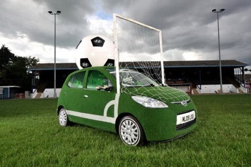 Kicsi rá az esély, hogy magánember jó hasznát tudja venni annak a Hyundai i10-esnek, mely a napokban került fel az eBay-re. Az autót a Hyundai foci vb-s promóciójához használták, ezért a karosszériáját műfű fedi, egy kapu díszeleg a szélvédő előtt, sőt még egy hatalmas futball labdát is ráerősítettek a tetejére, így a használati értéke nagyjából nulla.