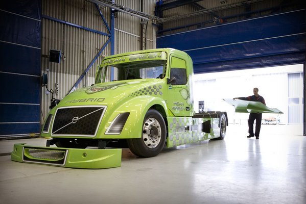 Az őrültség még mindig komoly reklámerőt hordoz – legalábbis erre utal, hogy sorra születnek az eszementebbnél eszementebb sebességi rekordautók. Ha valaki azt gondolná, hogy már minden ilyet látott, ki kell ábrándítsuk: a Volvo Trucks most például a földkerekség leggyorsabb hibrid teherautóját építi, amely 2011 tavaszára válhat késszé a rekorddöntésre. A gyors haladáshoz szükséges teljesítmény nagyobb része persze hagyományos dízelmotorból érkezik. A 16 literes dízelmotor, amelyet két turbófeltöltő táplál, 1900 lóerőt ad le, a villanymotor ehhez képest mindössze 200-at. Az elekrtomos segédhajtás egyébként is inkább indulásnál számít, ahol az 1000 Nm-es csúcsnyomaték segíthet megmozdítani a nagydarab vontatót.