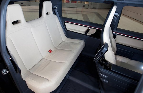 Az egykori Space Up! Tanulmány átdolgozásából született jármű csupán két utas fogadására alkalmas, viszont az anyósülés helyén jó nagy helyet hagytak a csomagoknak. Így mindenki bőségesen elfér annak ellenére, hogy az autó hossza csupán 3,73 méter és a szélessége is csupán 1,68 méter. A tágas belső nagyrészt persze az 1,6 méteres magasságnak köszönhető, lényegében ez teszi alkalmassá az autót a taxi-feladatok ellátására. A VW persze szépen kidekorálta a tanulmányautót: ahogy egy brit taxihoz illik, az alapszín fekete, a tetőn a Miniket idéző brit zászló látható, szürkeárnyalatos kivitelben, az ajtókon pedig London címere látható.