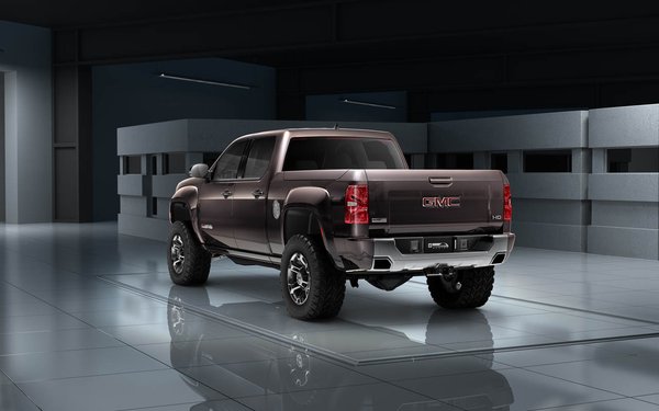 Ha abból indulunk ki, hogy manapság minden gyártó kisebb fogyasztásra, tömegre és anyagfelhasználásra törekszik, a GMC pick-up pontosan a széliránnyal szemben áll. Az alvázas felépítés és a szögletes, nagy homlokfelületű felépítmény sok feleslegesen elégetett üzemanyagot jelent, még akkor is, ha a platós óriás 6,6 literes, 397 lóerős V8-as motorja gázolajat, és nem benzint fogyaszt. Cserébe a Sierra komoly terepjárónak tűnik, legalábbis a 89 centi átmérőjű BF Goodrich off-road gumik és a megemelt hasmagasság alapján. Belül megint egy újabb arcát mutatja a tanulmány: csupa bőr és szálcsiszolt fém, a létező legmagasabb felszereltséggel és azzal az új, 80 GB-os háttértárolót tartalmazó hifi rendszerrel, amelyet a GM csak a közeli jövőben kezdi felszerelni a szériamodelljeit.