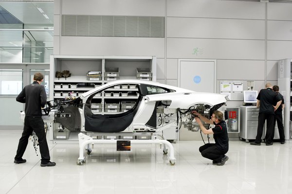A gyártás beindításának alkalmából a McLaren közzé tett egy képsorozatot az MP4-12C előállításának egyes lépéseiről, ami igencsak tanulságos: ugyanolyan patikatisztaságú terekben rakják össze a sportkocsit, ahogy az F1-es gépek is készülnek. Évi néhány ezer autó legyártásához persze nem kell konvejoros gyártósor, de mégsem gondoltuk, hogy ennyire sok kézi munkával állítják össze az autókat. A szerelés guruló álványokon történik, és egyszerre többen szerelik be az alkatrészeket a karosszériába.