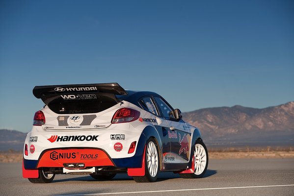 A Hyundai nagyot próbál kaszálni a Velosterrel, méghozzá elsősorban az amerikai fiatalok körében, de ehhez meg kell mutatniuk, hogy a három oldalajtós sportkocsi izgalmas tárgy. Épp ezért már a kezdetektől versenyeznek vele, a Pikes Peak-ről ismert Rhys Millen Racing révén. A versenyautóknak persze viszonylag kevés közük van az utcai Velosterhez: a tetőt és a vázat ugyan meghagyták, de a karosszériaelemeket szénszálas műanyagra cserélték, az Xtrac-től vásárolt összkerék-hajtást és versenyváltót szerelték bele, a motort pedig egy 500 lóerős turbós négyhengeresre cserélték. Az 1205 kilogrammos gépbe ezen felül nyolcpontos bukókeret, illetve 14 hüvelykes első és 12-es hátsó féktárcsák kerültek hatdugattyús féknyergekkel.