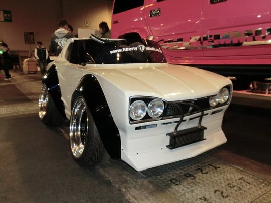 Úgy néz ki, az őrületet egy cég, a Liberty Walk próbálja elterjeszteni Japánban: quad-vázakra építik az autó-karikatúrákat, amelyek így nem túl tágasak – leginkább pedálos kiskocsi helyett válnának be – és a motorkerékpár-kormány is furcsán néz ki rajtuk, de legalább működnek. A GT-R már a második ilyen alkotásuk: egy zsugorított Lamborghini Murcielagót már gyártanak megrendelésre is, méghozzá nem is olcsón: egy-egy példány ára 1,8 millió jen, azaz csaknem 4,5 millió forint.