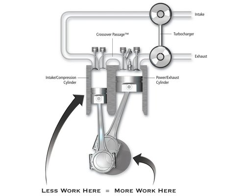 A benzinmotor, úgy tűnik, még nem teljesen lejárt lemez. Az olasz nevű, de amúgy amerikai Scuderi mérnökiroda talált még 15-20 százaléknyi hatásfokot, miközben a nyomatékát a dízelek szintjére hozták. Ja, és egy végtelenül egyszerű kiegészítéssel akár olcsó hibridként is működhet.