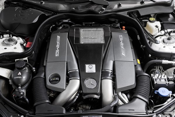 Az új turbós V8-ast a CL osztályban már korábban megmutatták, és most az E63 AMG is megkapta. A jelzés megtévesztő, hiszen már nem 6,2 literes a motor, viszont az előző E63-assal megegyező teljesítményű, 525 lóerős az 5,5 literes, két turbós nyolchengeres – nyilván ezért nem akarták azt a látszatot kelteni a típusjelzés megváltoztatásával, mondjuk E55-re, hogy kevesebbet kínál az új AMG Mercedes. Sőt, az új motor sok tekintetben többet kínál. Egyrészt sokkal nagyobbak a tartalékai: a gyáriak is kínálnak hozzá olyan tuningkészletet Performance Package néven, amellyel a teljesítménye 557 lóerőre növelhető, jelentősebb átépítés nélkül. Másrészt már alapkivitelben is jóval nyomatékosabb karakterű, mint az elődje. A 700 Nm-es csúcsérték 1750-es és 5000-es percenkénti fordulatszám között folyamatosan elérhető, és valószínűleg lehetne több is a nyomaték, ha a hétfokozatú automata bírná.