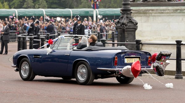 A királyi, valamint a Middleton család az állami autóflottával kószált helyszínről helyszínre az esküvő alatt. Volt itt Bentley, Rolls-Royce, Daimler, a legszembetűnőbb azonban mégis az volt, amikor Vilmos, és friss felesége, Kate egy az alkalomra feldíszített 1969-es Aston Martin DB6-ost villantott. Mindössze néhány rövid percig jutott az élvezetből Vilmosnak, aki apjától, Károly hercegtől kapta kölcsön az autót. Azt a keveset is lépésben, hevesen integetve tette meg az ifjú pár.