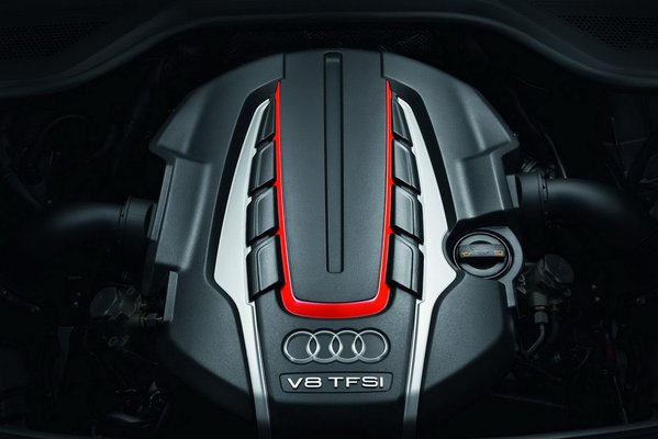 Az Audi S8-asba korábban V10-es motort szereltek, ugyanazt, amely a Lamborghini Gallardóban dolgozik, csakhogy 450 lóerőre butítva. Nem mintha ennyi nem lenne bőven sok egy utcai autó számára, de a presztízsversenyhez ennyi kevés, hisz a Mercedes az S osztály AMG változatában például bő hatszáz lóerőt kínál tizenkét hengerből. Így az Audi, ha hengerszámban nem is, teljesítményben előrébb lépett, és a downsizing jegyében egy kisebb, takarékosabb sportmotort tervezett az új S8 számára. A 4 literes, két turbós, közvetlen befecskendezéses gép 520 lóerős, 650 Nm-es csúcsnyomatéka pedig 1700-as és 5500-as fordulatszám között mindenütt elérhető a gázpedál tövig tiprásával. Nem csoda, hogy az alumínium hodályt 4,2 másodperc alatt gyorsítja 100 km/h-ra.